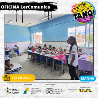 A oficina LerComunica é uma ação de cunho artístico pedagógico, que tem sua metodologia pautada na leitura e debate de obras literárias nacionais, visando construir processos reflexivos, com diálogos, desenhos, narrativas, sobre a importância da leitura e literatura na construção de seus conhecimentos cognitivos e o interesse pelo significado das