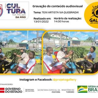 Com isso a produção de 1 conteúdo audiovisual, criação de site onde nós possibilitará a difusão das expressões artísticas dos artistas da/na periferia de Valéria.